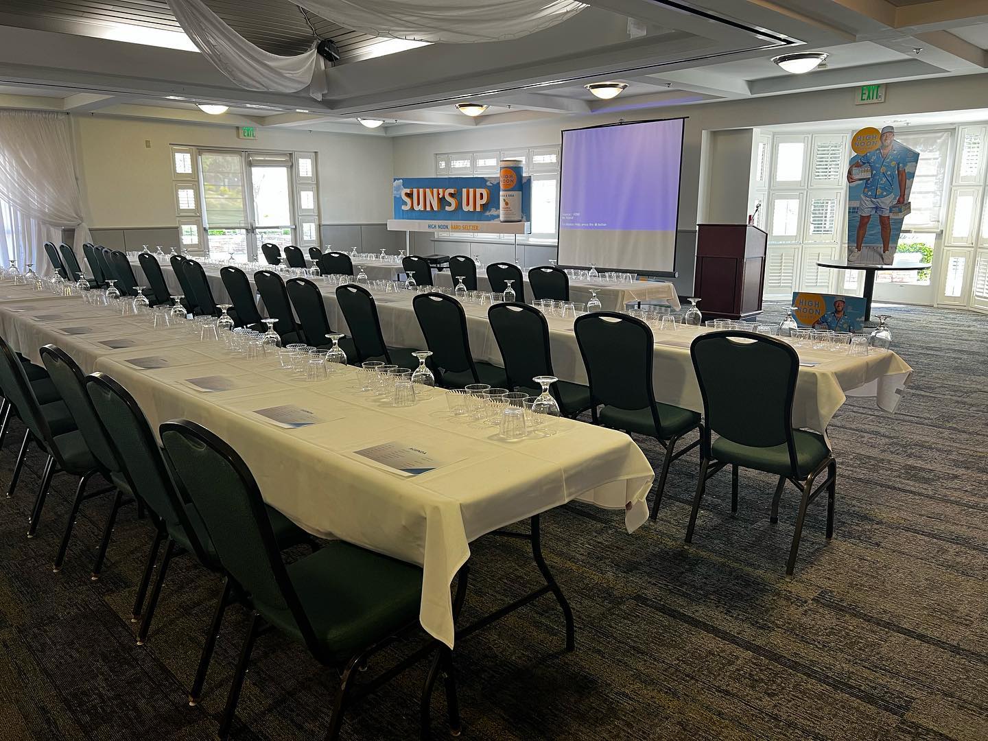 - Tables with linens, chairs, plates, silverware, glassware, & napkins